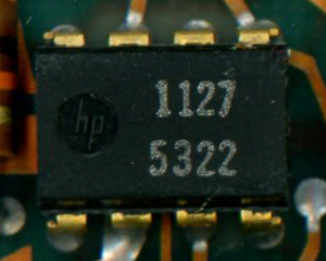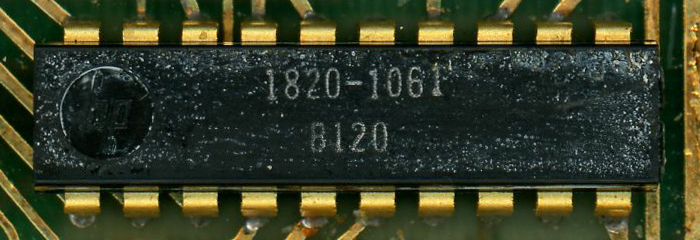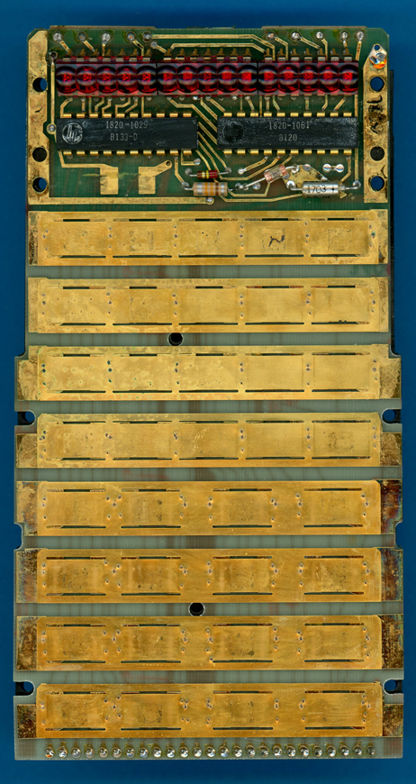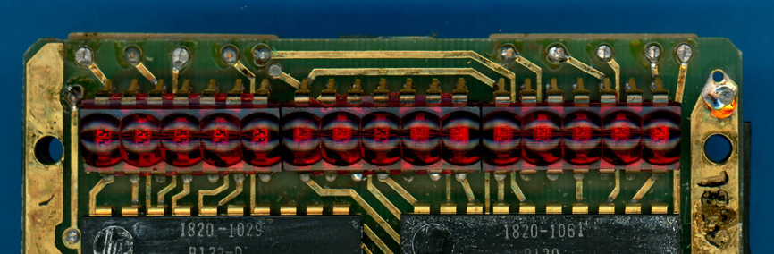 PCB of the HP-80 with two display drivers and three 7-segment LED-Display Modules with 5 digits, each. ![]() |