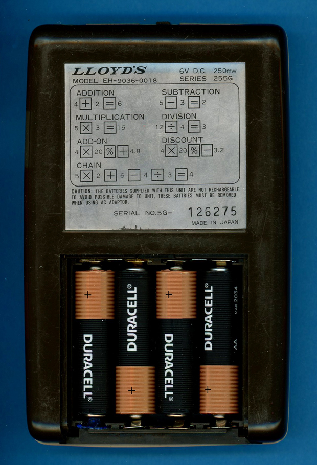 The Lloyd's Accumatic 30 is powered by four disposable 1.5 Volt batteries.![]() |