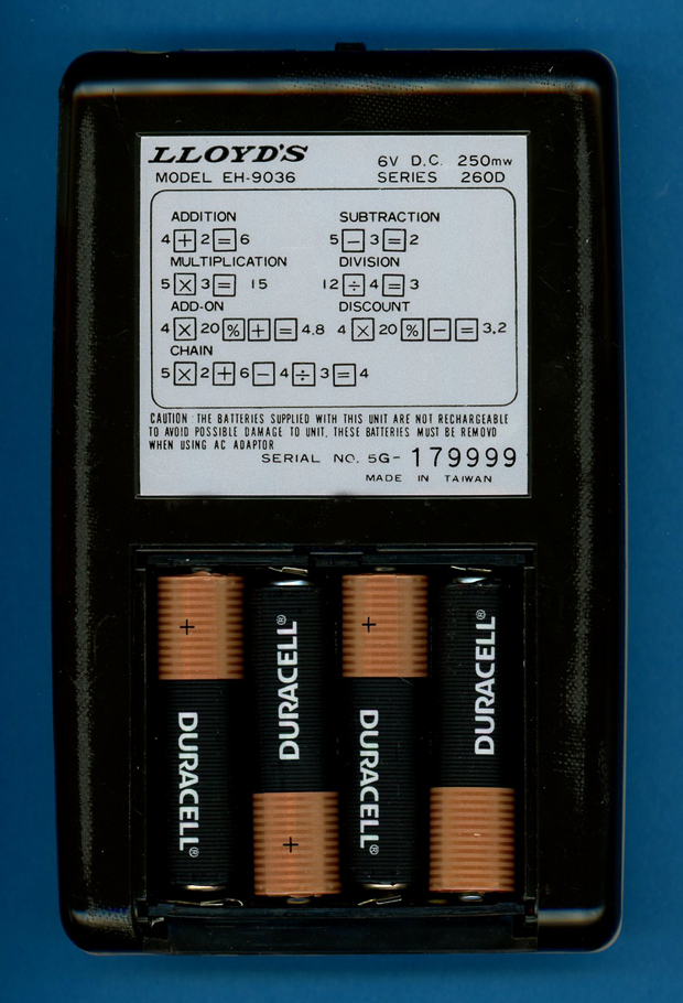 The Lloyd's Accumatic 30 is powered by four disposable 1.5 Volt batteries.![]() |