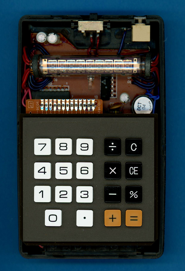 (Model EH-9036, Version 260D Hitachi) calculator with the frontside of its housing removed.![]() |