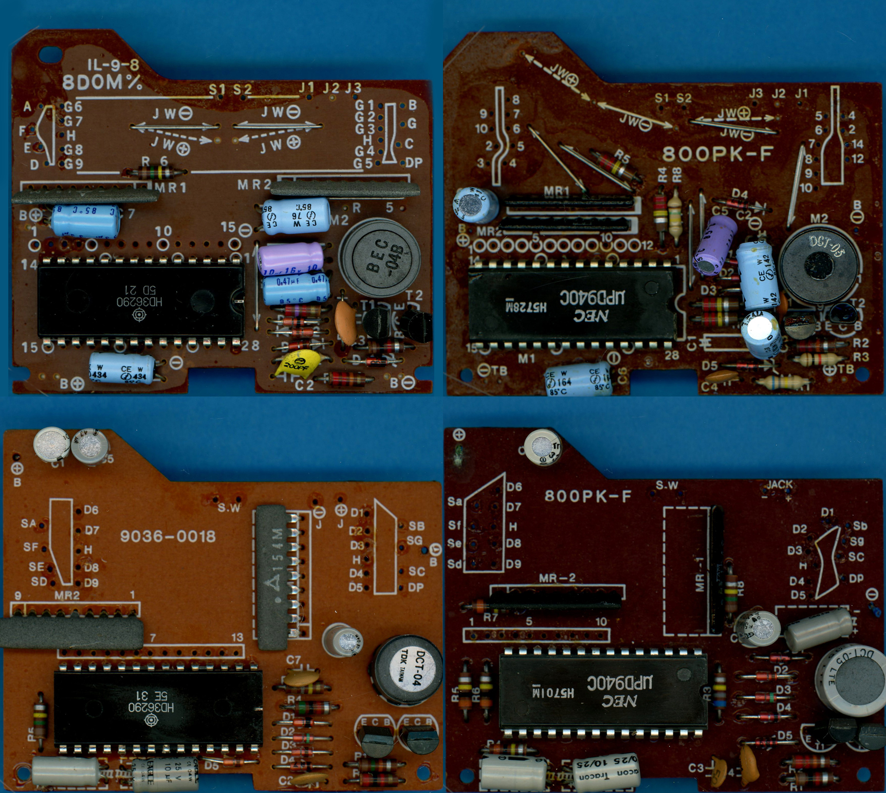 (upper left), Model EH-9036, Type 255G (upper right), Model EH-9036, Type 260D Hitachi (lower left), and Model EH-9036, Type 260D NEC (lower right). ![]() |