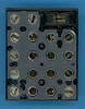 Display: The MBO Expert donor calculator manufactured around October 1975 makes use of a WB7-44 9-Digit Calculator Numeric 7-Segment LED display module from an unknown manufacturer. It uses nine small 7-Segment displays chips bonded onto a PCB and magnified with a clear plastic lens. The display module is connected with 17 pins to the Main-PCB and follows the pinout of similar displays.