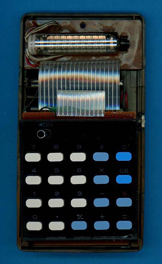 de Luxe I calculator with the frontside of its housing removed.![]() |