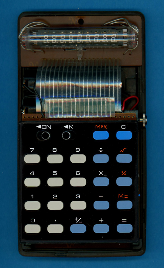 de Luxe III (Version 1) calculator with the frontside of its housing removed.![]() |