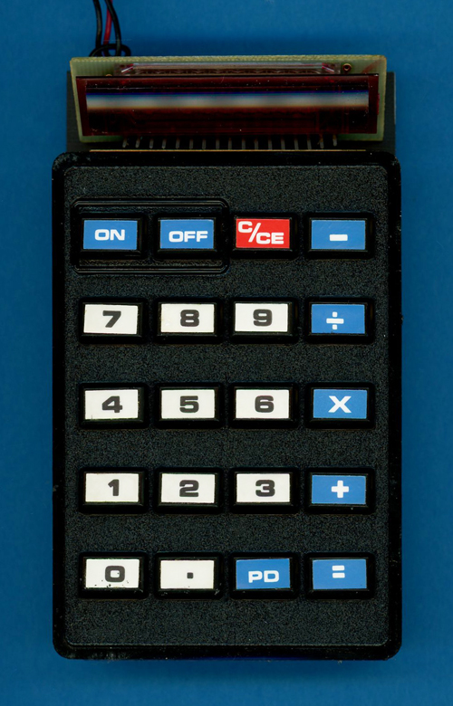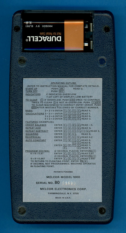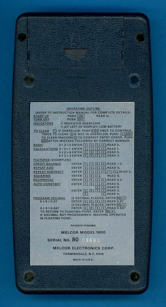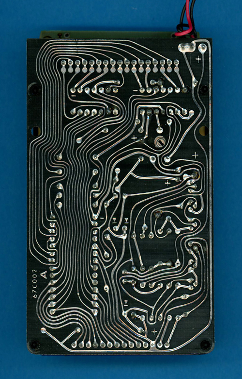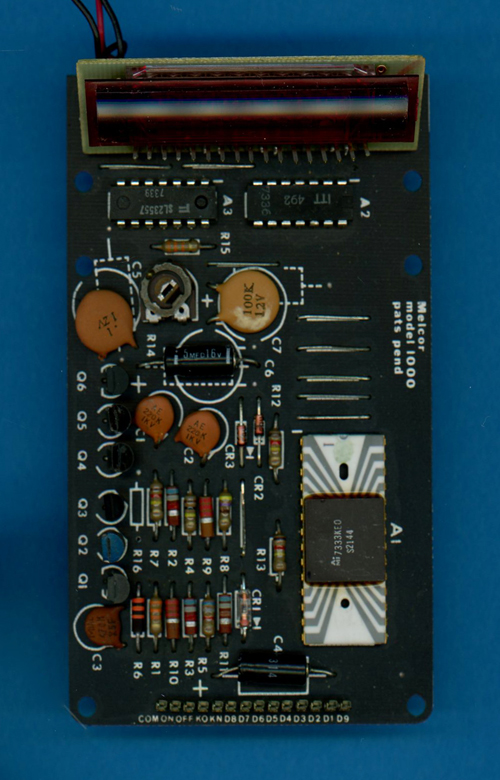 (PCB) of the Melcor Model 1000 calculator is centered around an AMI S2144 single-chip calculator circuit with two additional digit driver chips.