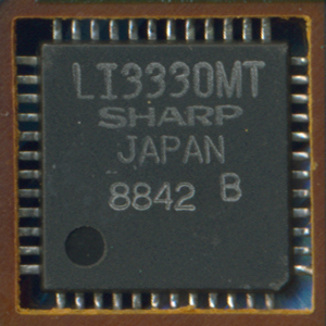 Close-up view of the Sharp LI3330MT single-chip calculator