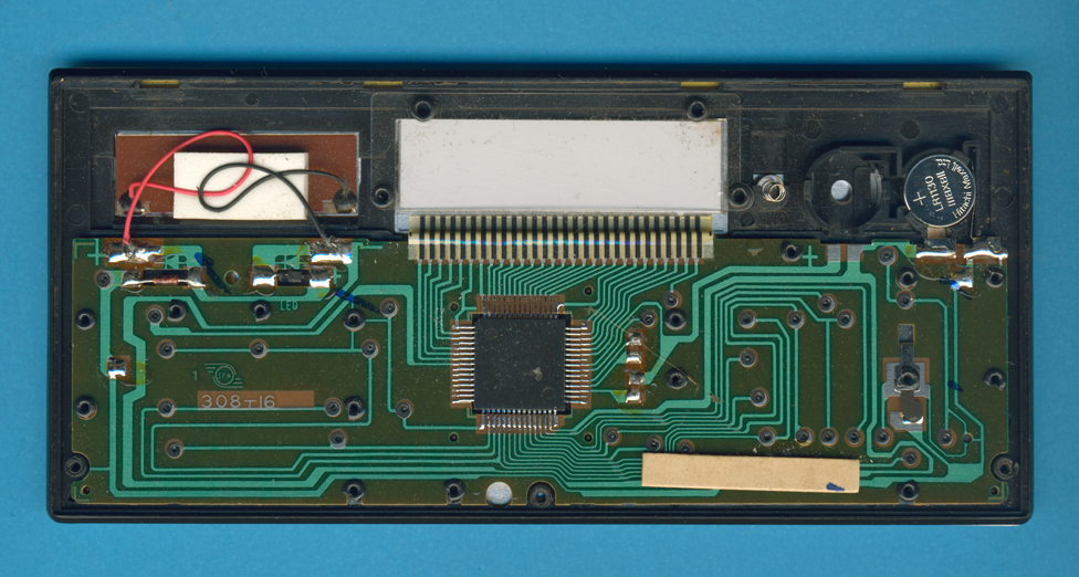 doesn't reveal type and manufacturer of its single-chip calculator circuit but we are almost positive to spot a Toshiba T7752S.