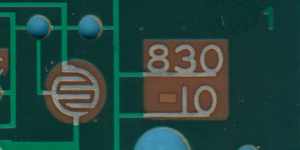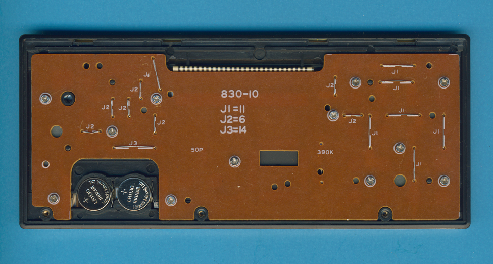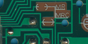 Close-up view of the jumper on the PCB of a Royal LCB 830 calculator. ![]() |