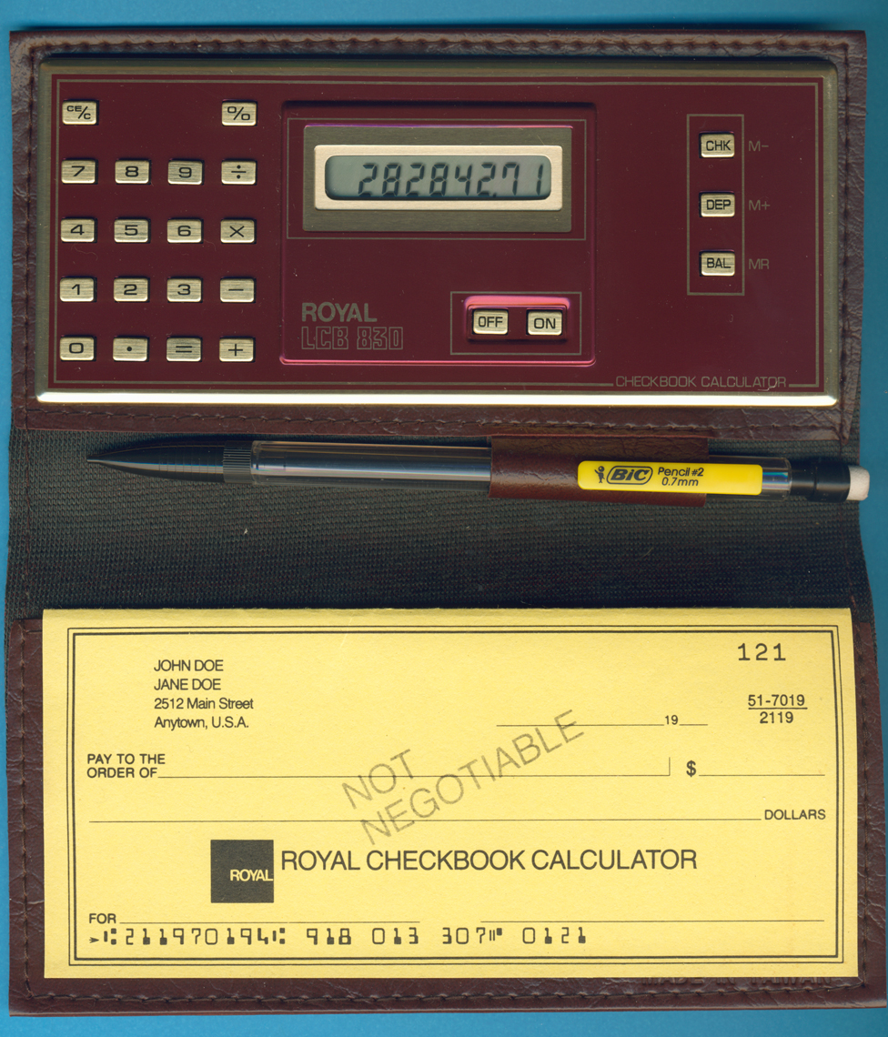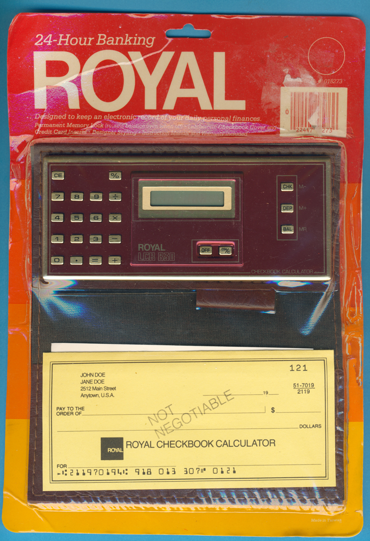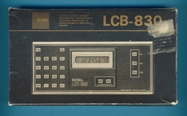 The sales box of a Royal LCB 830 Checkbook Calculator sold around