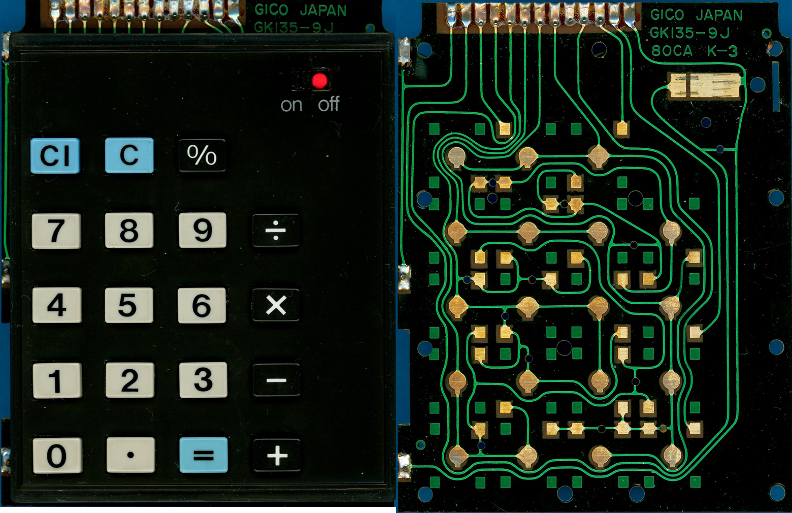 (PCB) of a Royal Model 90K (UA120) calculator manufactured in