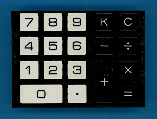 plastic keys pushing fingers on a stamped sheet-metal piece against