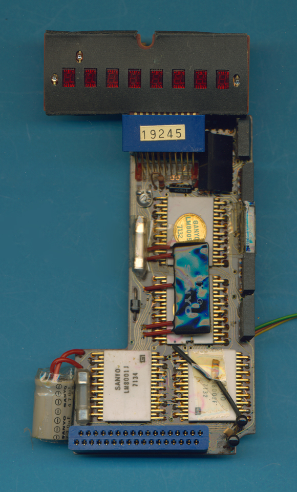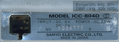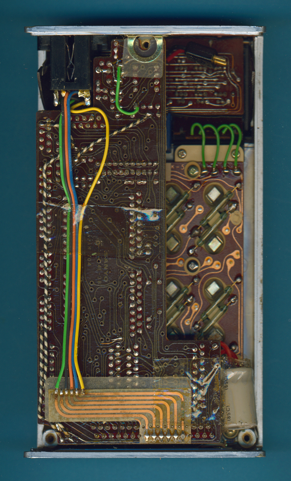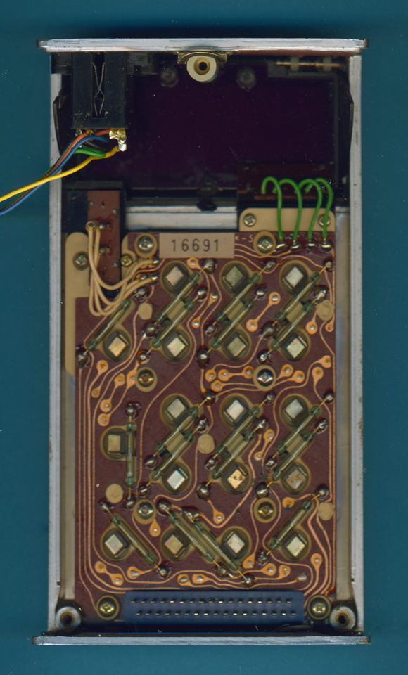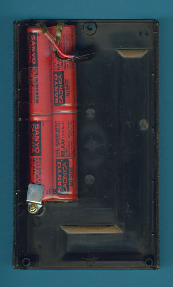 backside shelf of the calculator housing accommodates 4 AA-sized NiCd batteries.