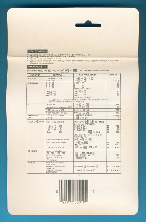 box of the Technico LC-601 calculator sold in 1985 in the United