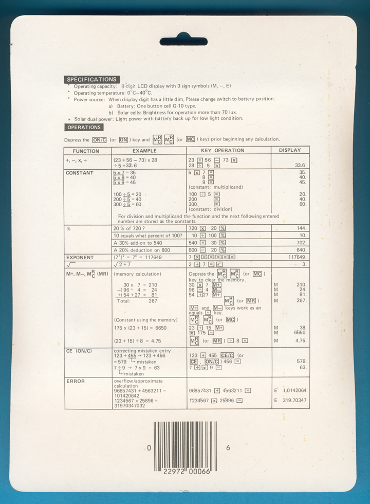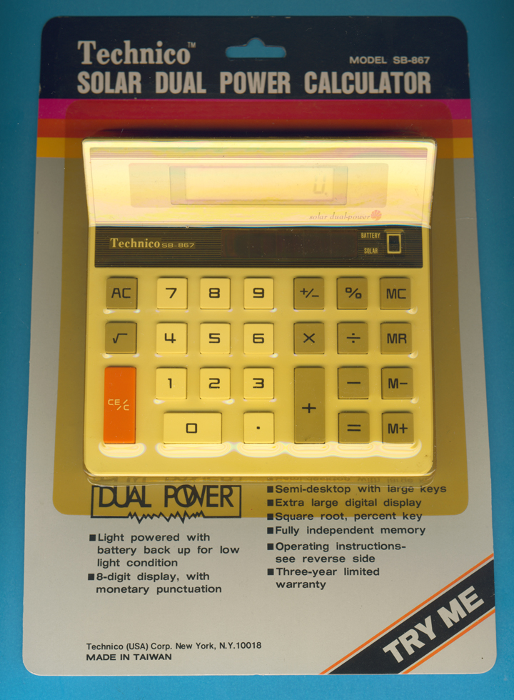 box of a Technico SB-867 calculator sold in 1987 in the United States.![]() ![]() |