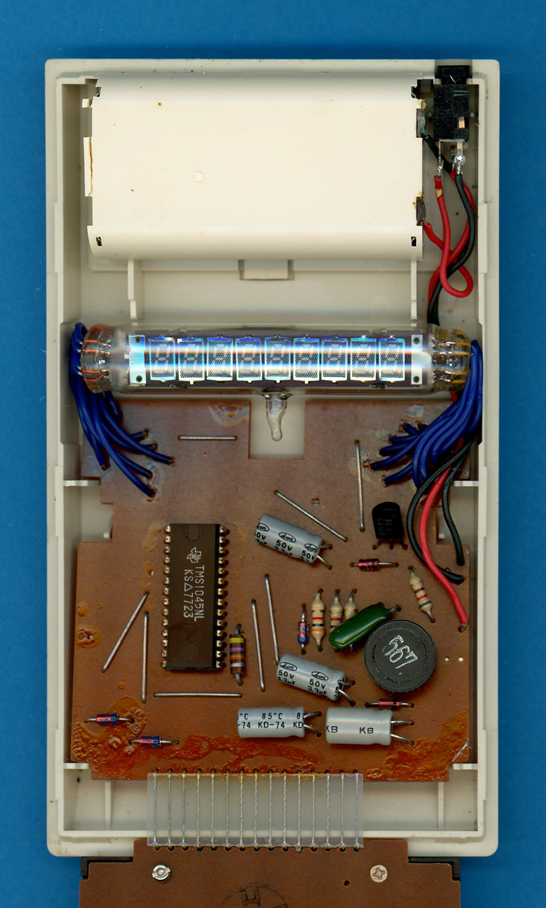 (PCB) of the Homeland 8109 calculator is centered around a TMS1045 single-chip calculator circuit.