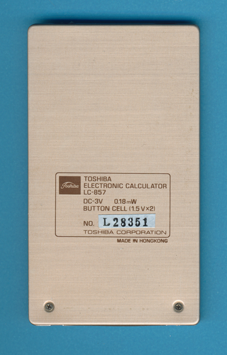 of the Toshiba LC-857 with a Toshiba T3709 single-chip calculator circuit.