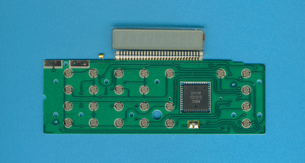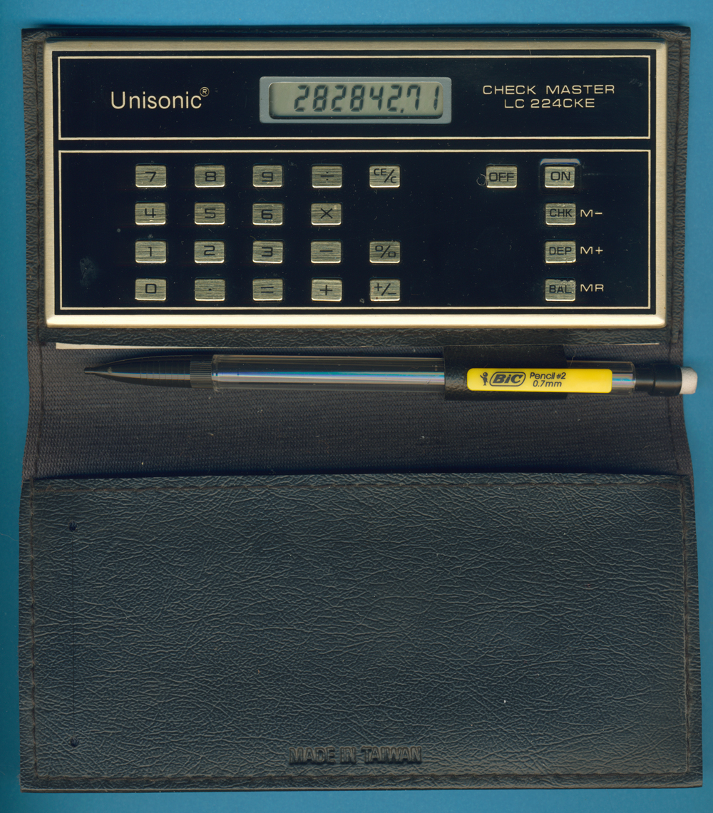 (PCB) of the Unisonic LC 224CKE calculator is centered around a NEC uPD1832G single-chip calculator circuit.
