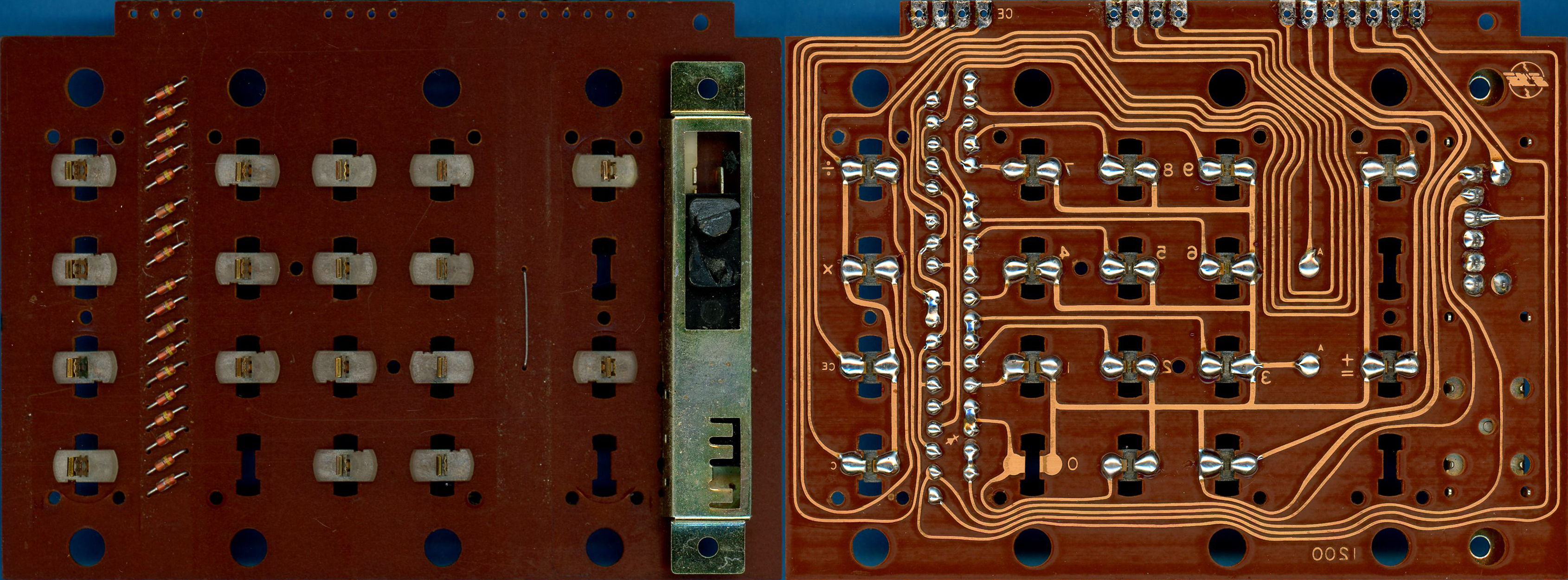 (PCB) of an Unitrex 1200 (Type 37, Rev. 4E) calculator manufactured in