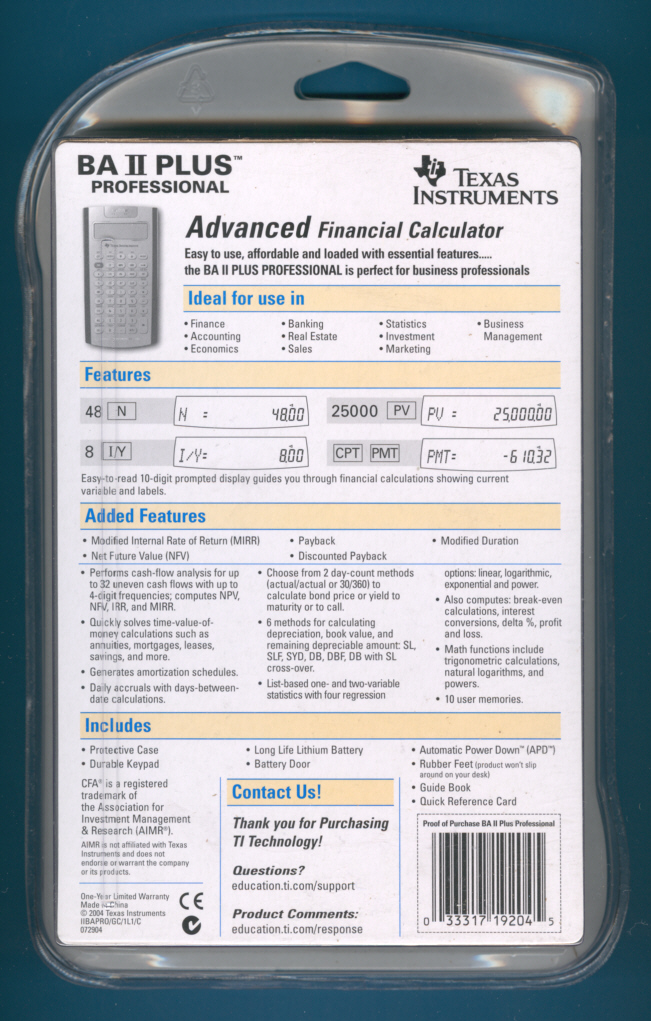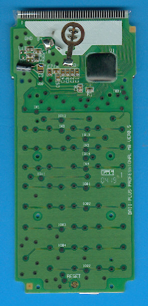 board (PCB) of the BA II PLUS Professional with just a single-chip calculator circuit. |