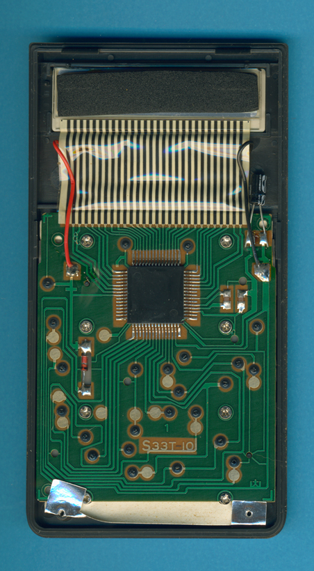circuit board (PCB) of the TI-18 SLR is centered around a Toshina single-chip calculator circuit.