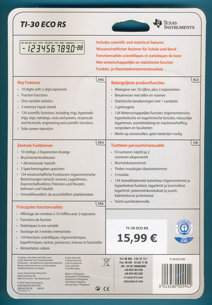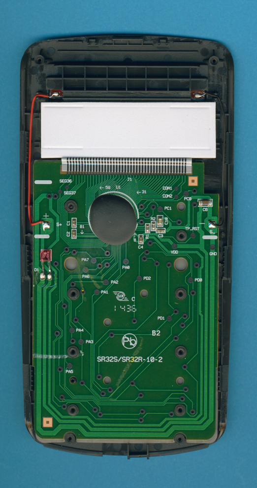 circuit board (PCB) of the TI-30 ECO RS looks familiar to us.