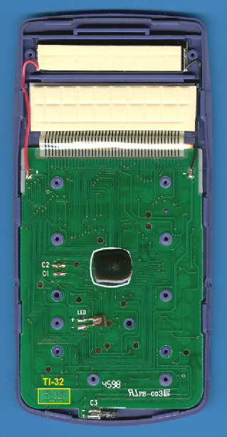 of the TI-40 SOLAR manufactured by Nam Tai in China with the calculator circuit bonded directly on the PCB (COB-technology or chip-on-board).