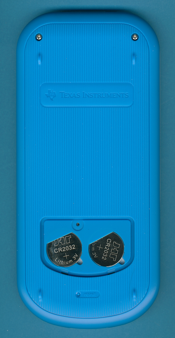 TI-Primaire Plus sporting two CR2032 batteries.