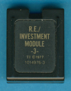 The 'R.E./ Investment' module for the TI-58, TI-58C, and TI-59 calculators. |