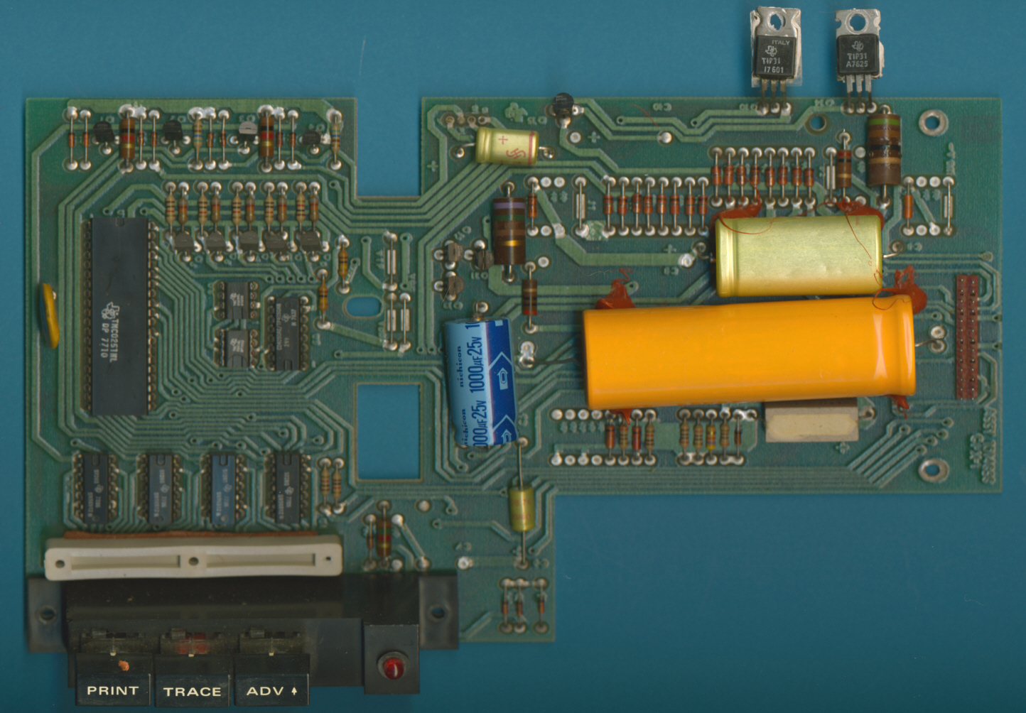 is centered around the TMC0251 Printer Chip from the TMS0200 series. The two additional TMC0561 and TMC0569 ROM to support the SR-52 resp. SR-56 are obviously missing.