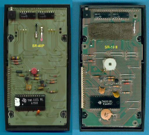 II. Please notice the different arrangement of the battery contacts, the TMS1111 using a socket and the small coil of the power supply. |