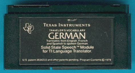 board (PCB) of the "Spoken German" Solid State Speech Module with four Speech ROMs: CD 2331, CD2332, CD2333, and CD2334. ![]() |