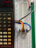 In a first step we removed the SSSM from a "Donor" TI-58, placed it on a solderless breadboard and wired it to the 8 contacts of the TI-58's SSSM bay. Next we connected a Hewlett-Packard HP-54645D Mixed-Signal Oscilloscope (MSO) to the Clock and Data Pins – just to realize that our own TMC0540