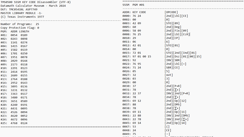 Picture 16: Python Crash Course: Disassembler for TI-58/58C/59 Key Codes and first Key Code program Listing. More to come...