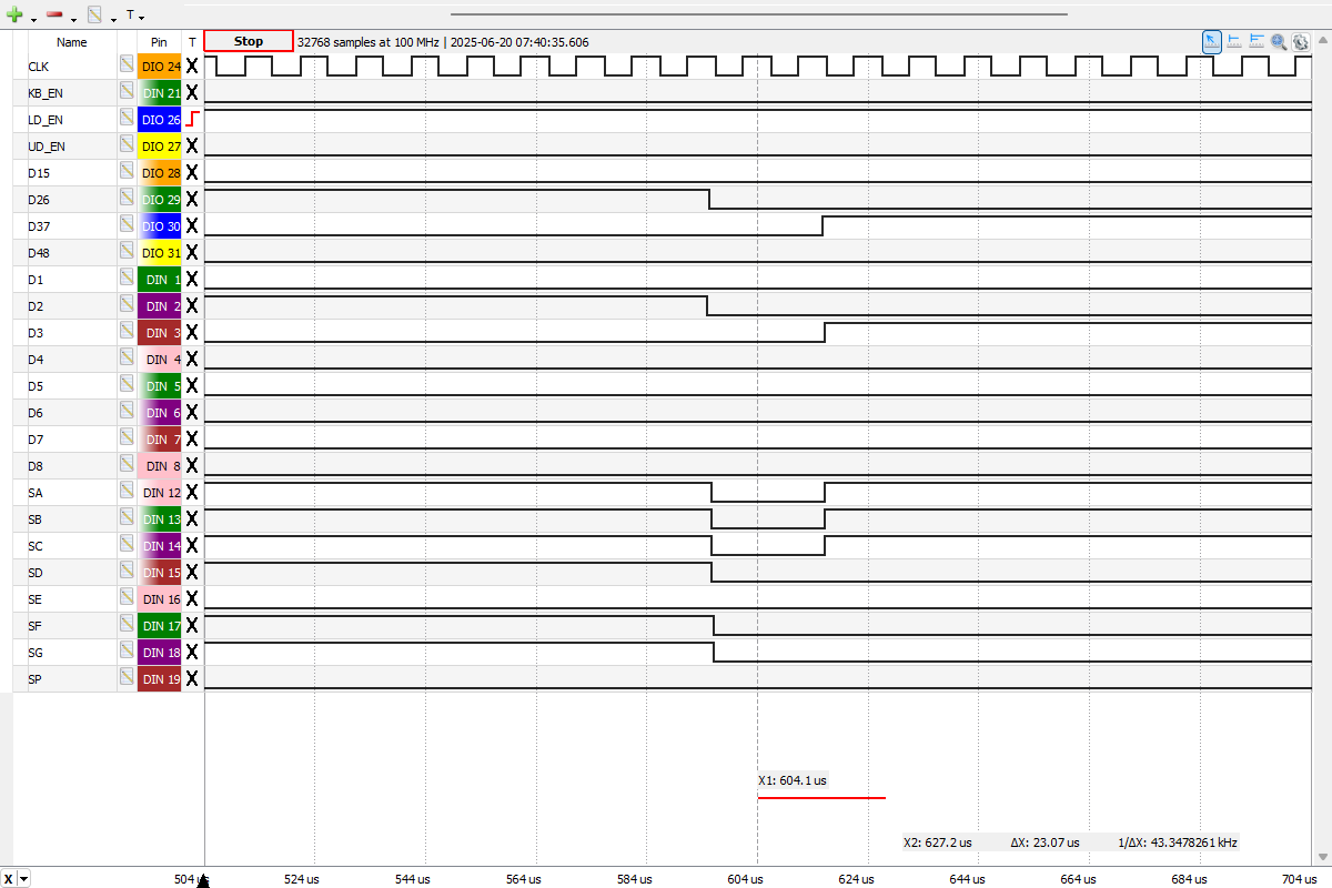 Digital V manufactured in May 1972 while displaying "-104.6790" and captured with the Digilent Digital Discovery connected to the DCM-50A Platform. GI 251F Clock Frequency at 100 kHz. |