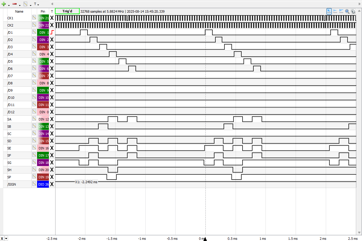 "-104.679" and captured with the Digilent Digital Discovery connected to the DCM-50A Platform. MK5011 Clock Frequency at 25 kHz. ![]() |