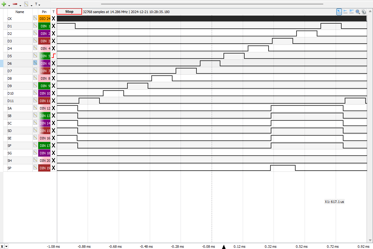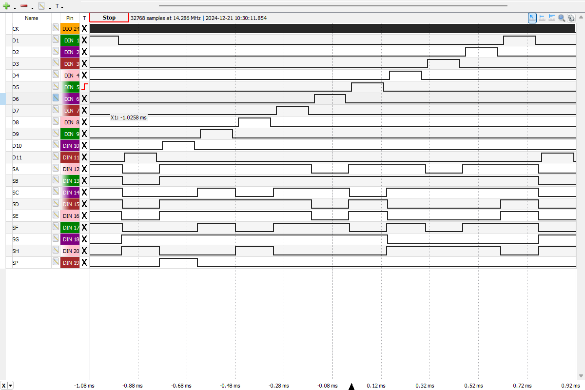 manufactured in June 1974 displaying "0." after power-up and captured with the Digilent Digital Discovery connected to the DCM-50A Platform. TMC0605NC Clock Frequency set to 250 kHz. ![]() |
