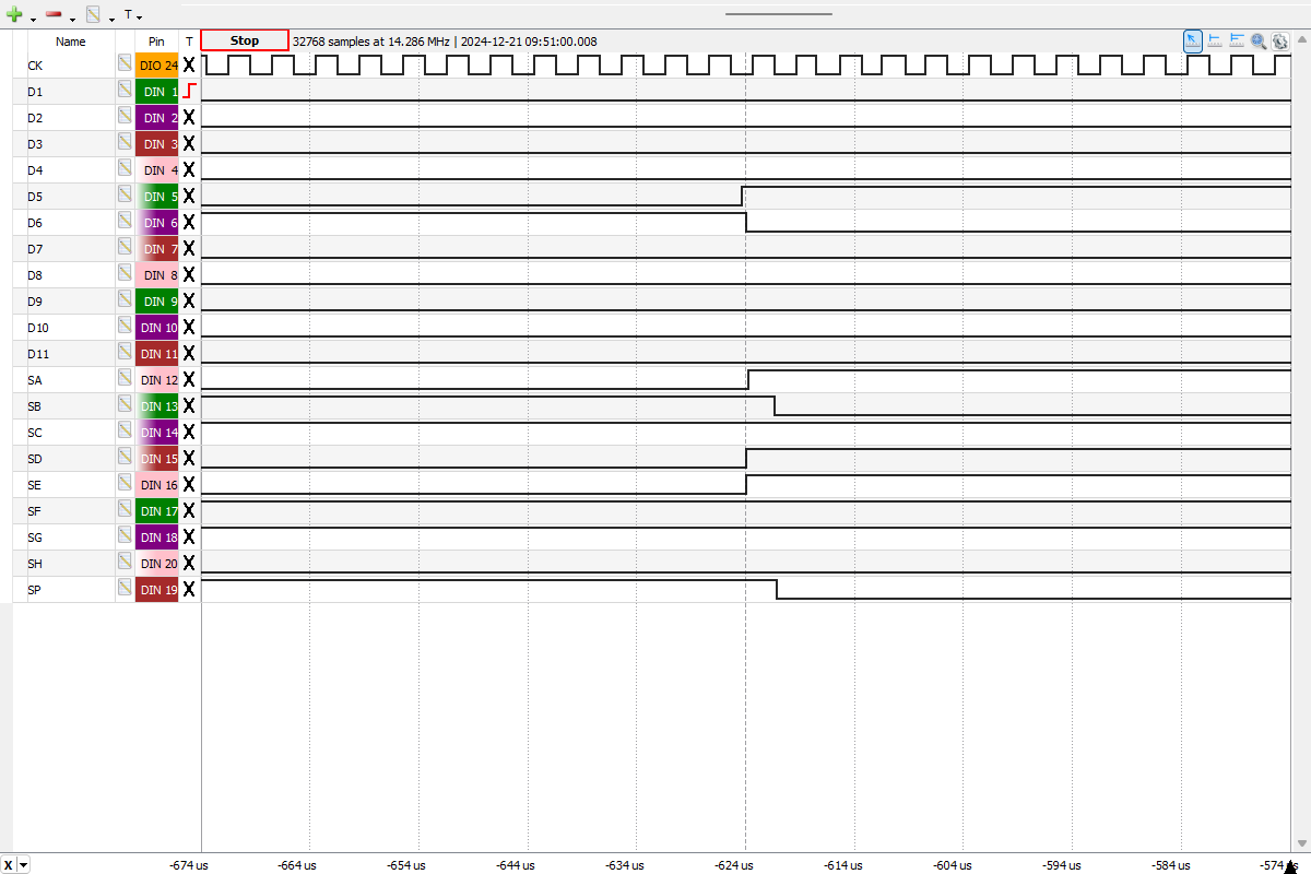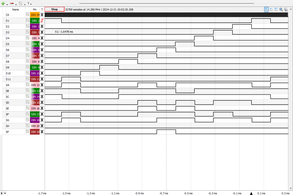1974 displaying "-104.679 -23" and captured with the Digilent Digital Discovery connected to the DCM-50A Platform. TMS0602NC Clock Frequency set to 250 kHz. ![]() |
