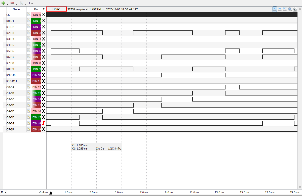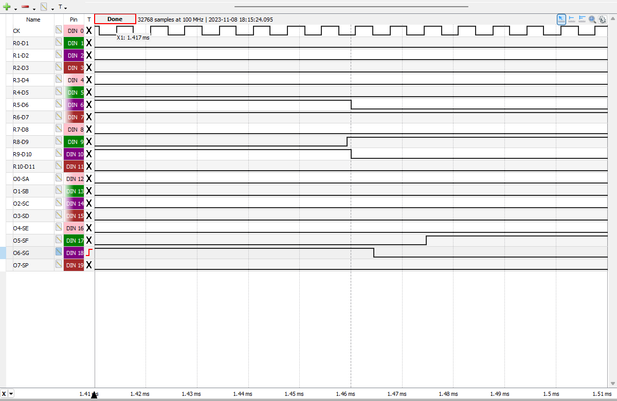 manufactured in December 1976 displaying " 1+ 4=" and captured with the Digilent Digital Discovery connected to the DCM-50A Platform. TMS0975NL BP Clock Frequency set to 150 kHz. ![]() |