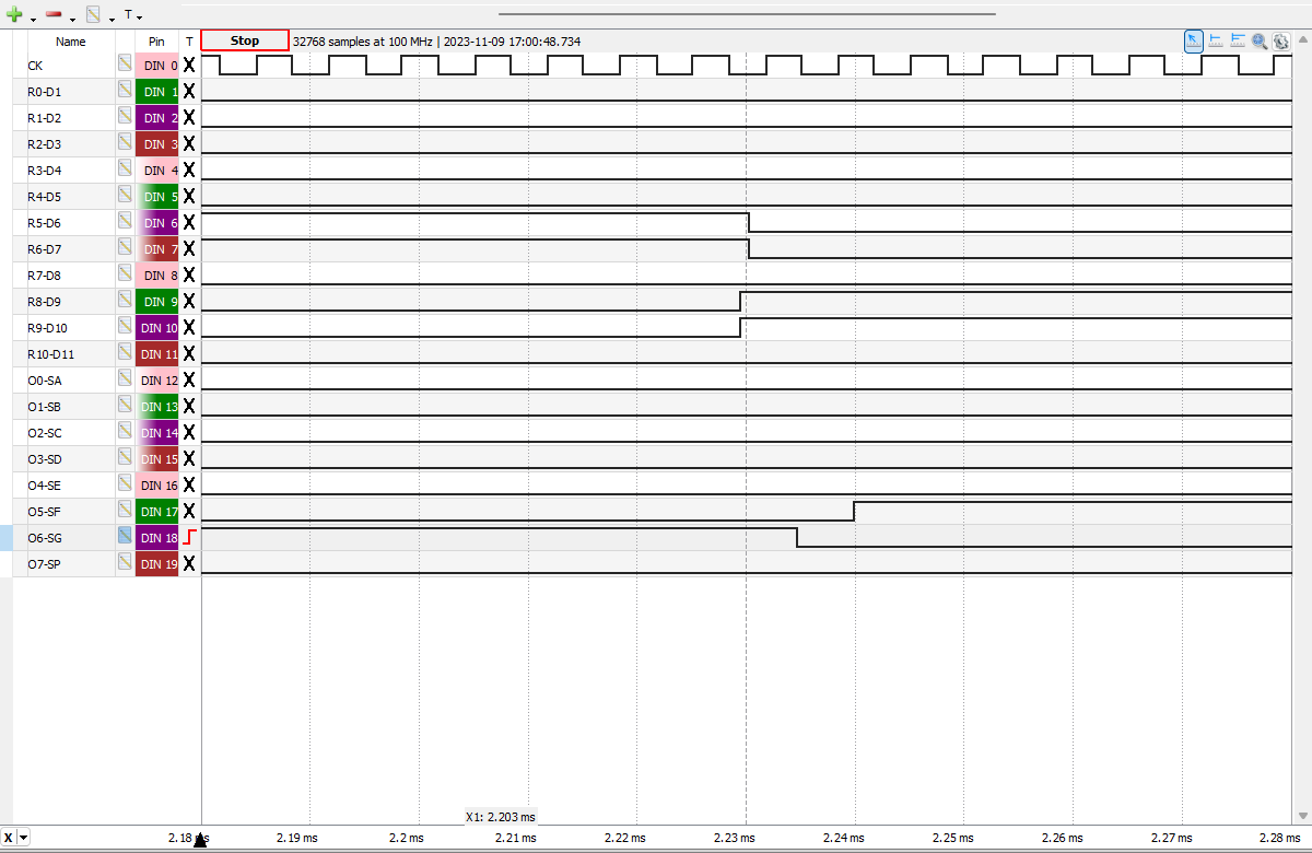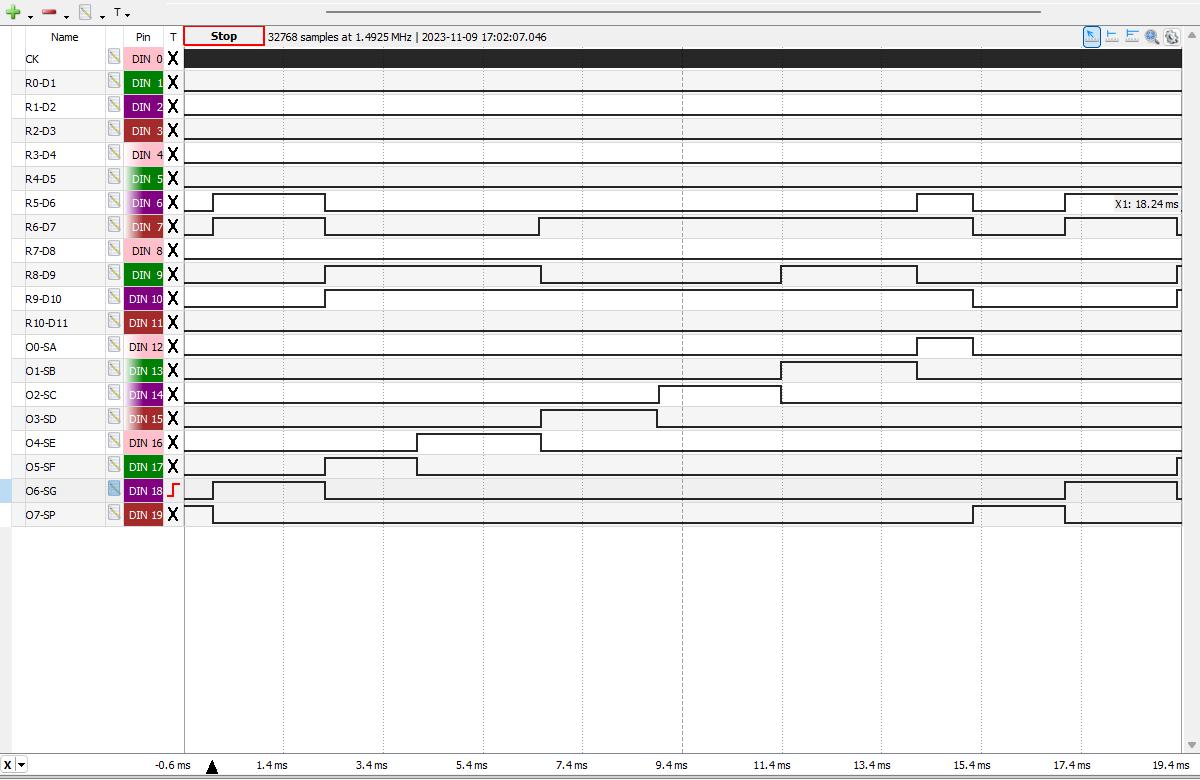 manufactured in September 1978 displaying " 0+ 3=" and captured with the Digilent Digital Discovery connected to the DCM-50A Platform. TMS0975NL GCS Clock Frequency set to 150 kHz. ![]() |