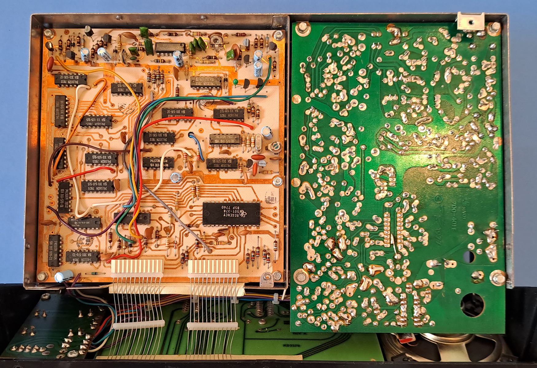 the opened Regency Radio Scanner ACT-T16K with three more PCBs visible. Left: Logic-PCB, lower left: Control-PCB and lower center: Keyboard-PCB. ![]() |