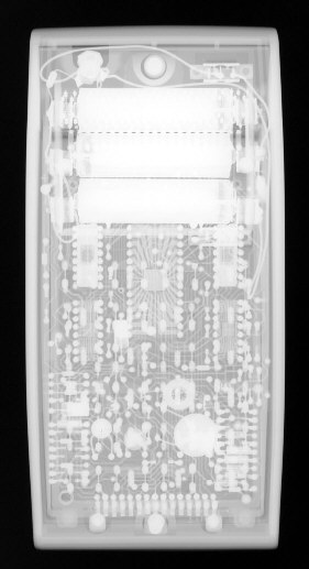 Ever thought about the invisible parts of your electronic calculator ? Edward Soudentas took some vintage calculators onto the X-ray machine and gives us unbelievable views of early technology. The Datamath Calculator Museum provides you 4 different calculators manufactured and sold by Texas Instruments and gives you additional views of the whole calculator and the printed circuit board.