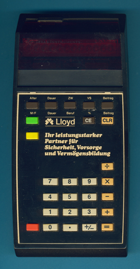 Compare it with a similar product by the insurance competition Agrippina, Allianz, LVM, Nordstern and Victoria or the CAL-Q-TAX calculator. Even the French carmaker Chrysler-Simca used the TI-58, don't miss the Chrysler Credicavia.